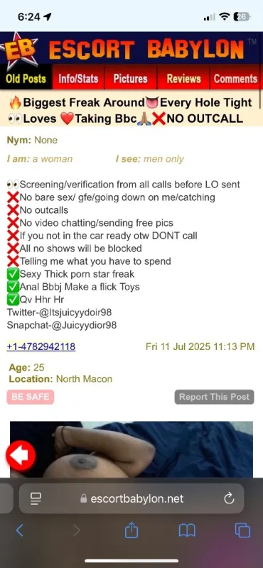 I AM IN DETROIT NOT MACON I REQUIRE VIDEO VERIFICATIONS ! PLEASE DONT GET SCAM BY THIS GIRL USING MY PICTURES YOU CAN VERIFY ME AT MY REAL SOCIALS ๐ธ INSTAGRAM - @THE.REALJUICYYDIOR ๐ป SNAPCHAT - @JUICYYDIORR13 โ TWITTER - @ITSJUICYYDIOR